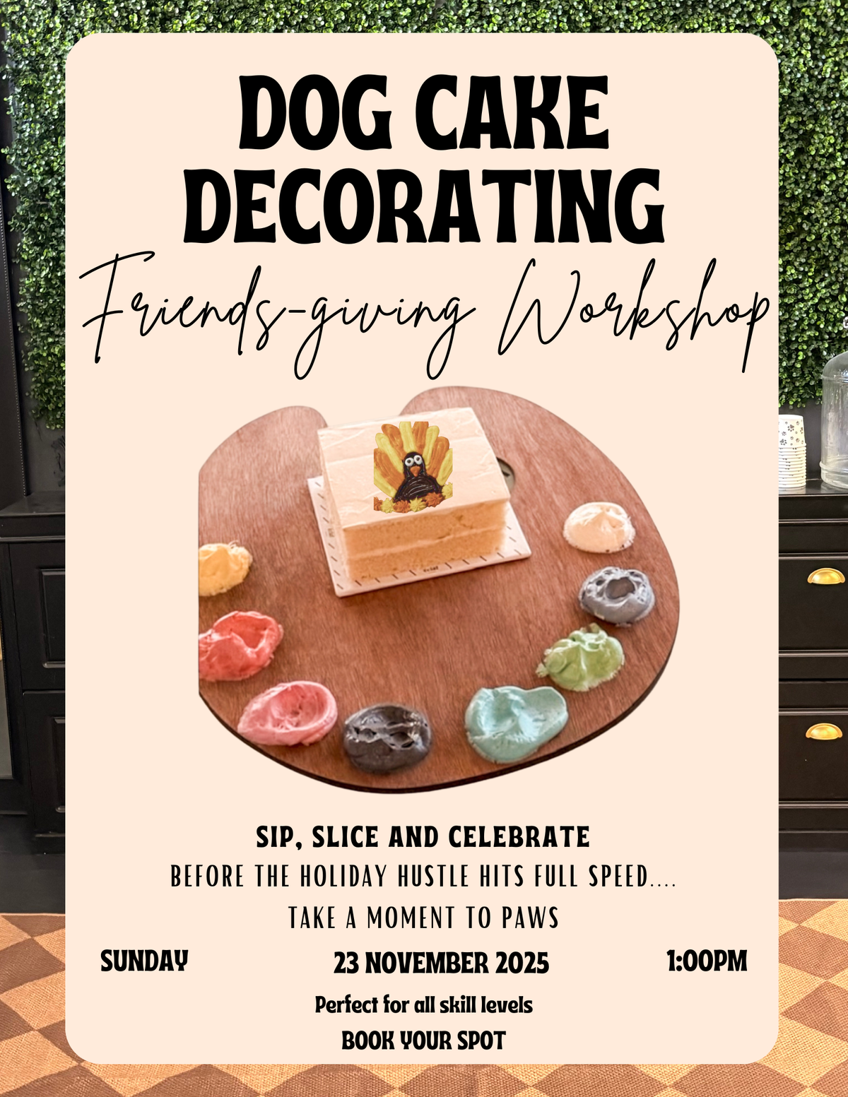 Sip, slice and celebrate! Before the holiday hustle hits full speed...take a moment to paws. Join us for a decadent Dog Cake Decorating experience - where YOU become your pups personal pastry chef.